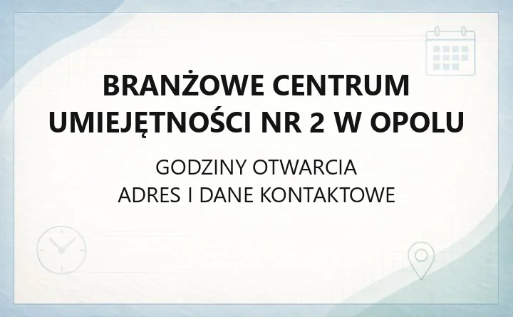 Branżowe Centrum Umiejętności nr 2 w Opolu - kontakt, godziny, informacje