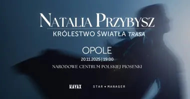 Natalia Przybysz zaprasza na koncert w ramach trasy “Królestwo Światła”, podczas którego zaprezentuje nowe piosenki utrzymane w klimatach soulowych. Wydarzenie odbędzie się w Narodowym Centrum Polskiej Piosenki w Opolu i jest zaplanowane na wieczór 20 listopada 2025 roku. Podane zostały dwie pule biletów w różnych cenach; sprzedaż prowadzona jest do wyczerpania dostępnych miejsc.